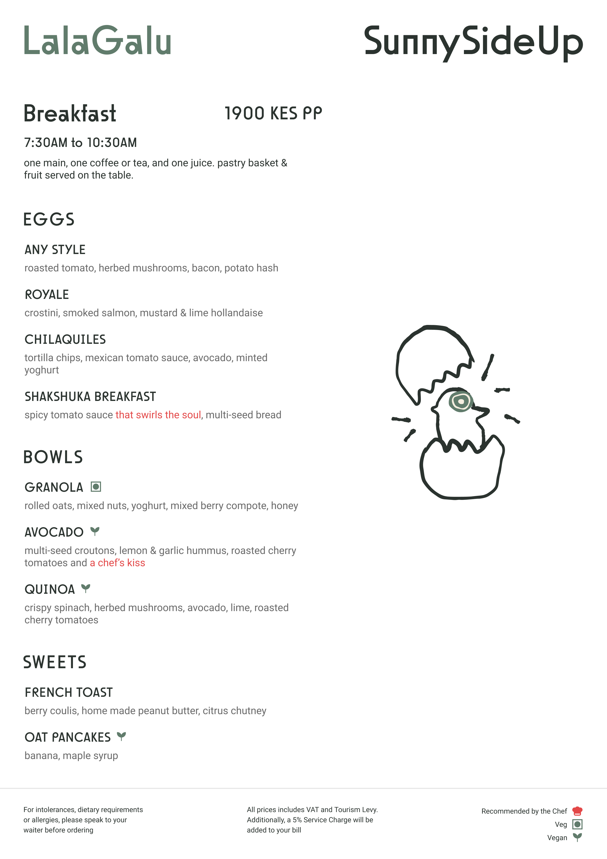 Sunnyside Up is a celebration of bright flavours, relaxed dining, and welcoming hospitality. We believe great food has the power to lift moods and bring people together, which is why our menu draws inspiration from global cuisines while staying rooted in comfort and warmth.